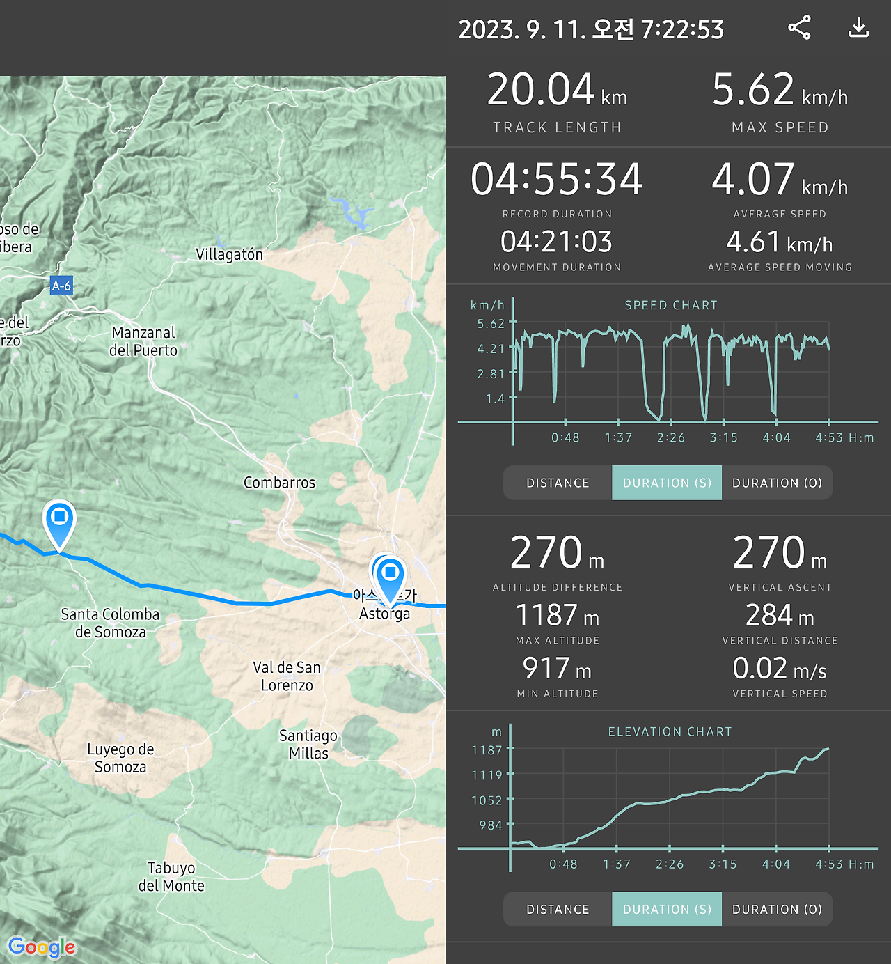 결국 혼자 알베르게로 돌아가 삐걱이는 파란색 2층 침대에 누워 휴식을 취한다. 저녁은 컵라면으로 해결한다. 꽤나 굵은 빗방울이 옥상의 경치를 톤다운 시킨다. 구석구석 볼거리와 먹을거리가 많은 도시를 제대로 누리지 못하여 무척 섭섭하다. 언젠가 스페인 북부를 다시 방문하게 된다면, 아스트로가만큼은 반드시 돌아오리라. 골동품 상점과 초콜릿 가게에서 지갑을 활짝 열고 말 테다.