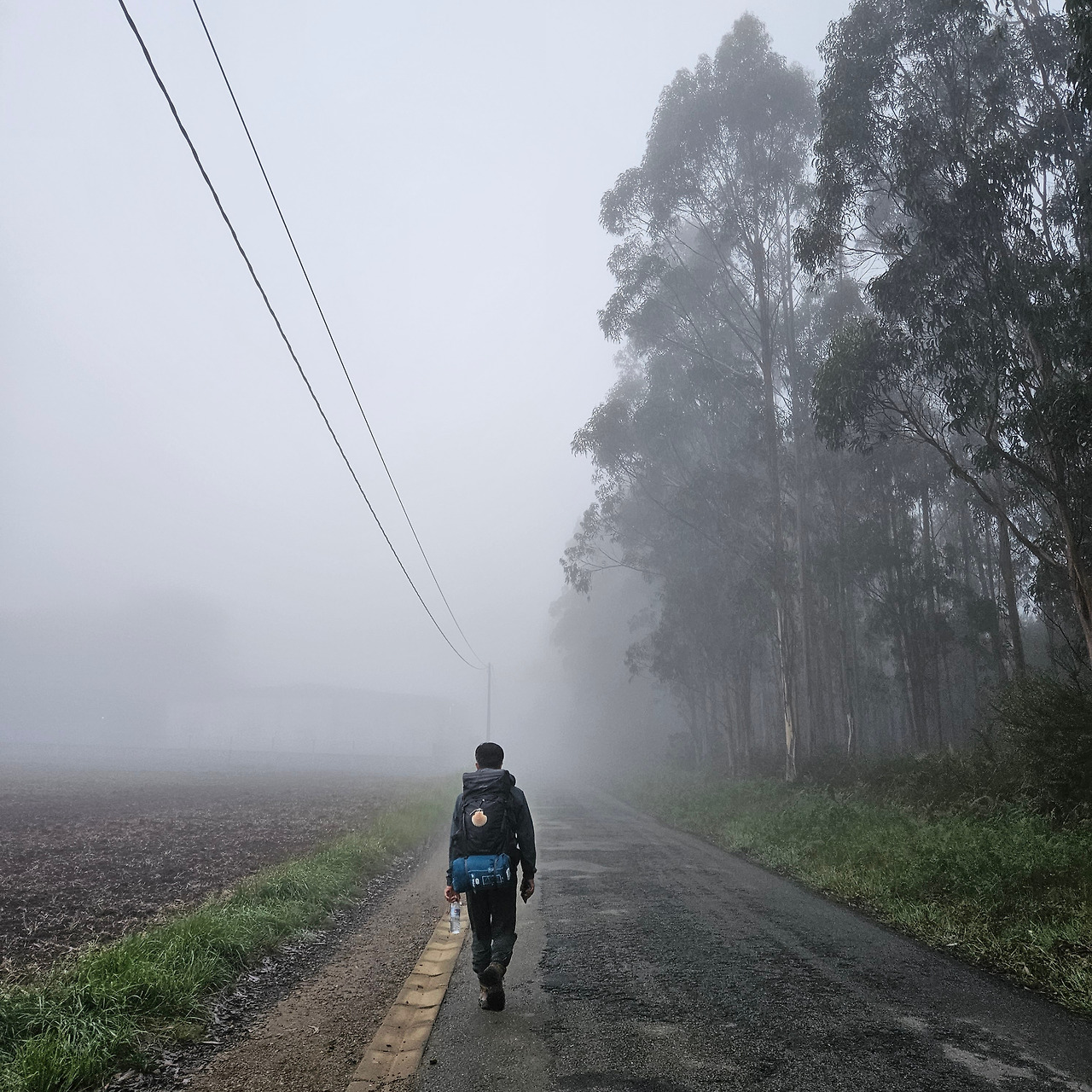 자욱한 새벽안개로 습도가 높다. 그래도 비가 오는 것은 아니니 다행이라 위안한다. 손전등 불빛에 의지하여 걷는 것도 오늘이 마지막이다. 순례자들은 각자의 속도로 마지막을 향해 나아가고 있다. 새벽을 지나 아침이 왔는데도 사위는 여전히 짙은 안개로 흐릿하다. 쨍한 날씨와는 전혀 다른 운치를 즐기며 나아간다.