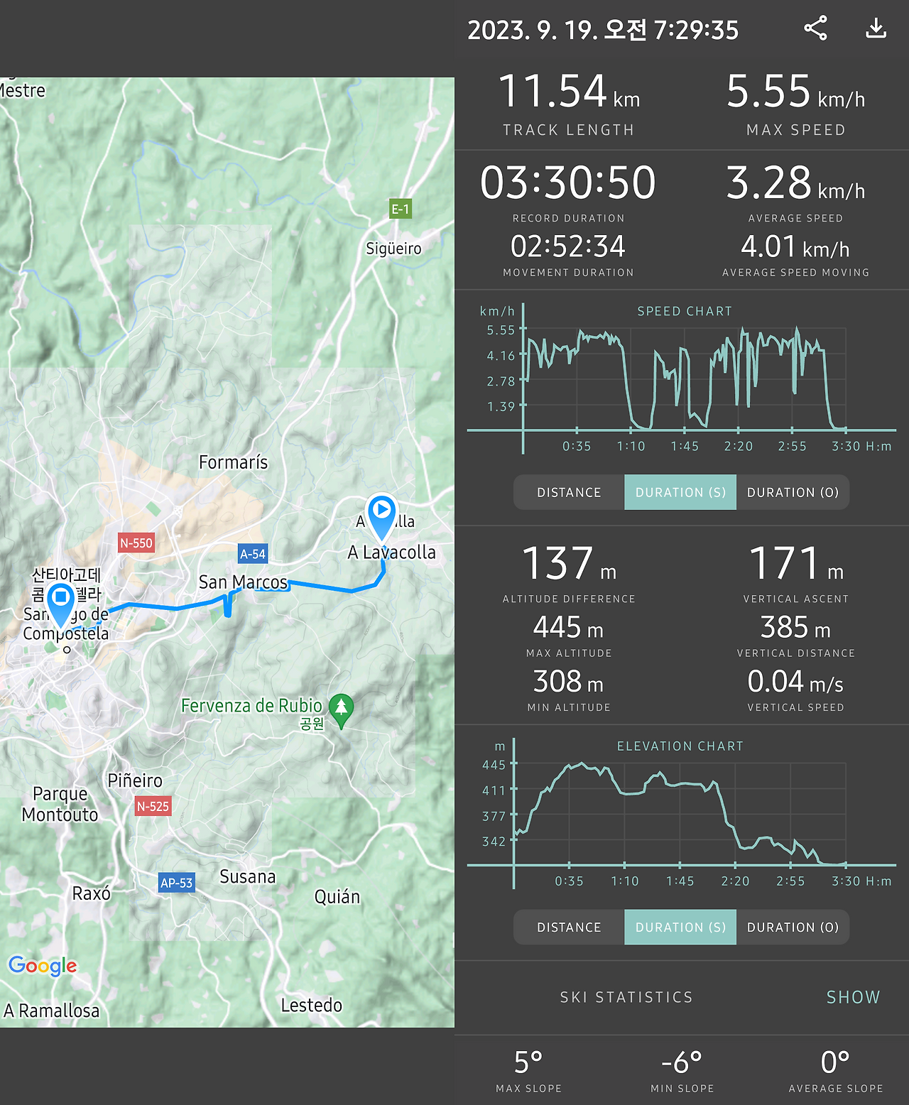 드디어, 마침내, 기어코, 마지막 날이 밝았다. 10km 남짓만 걸으면 되므로, 정오 전에는 도착하는 일정이다. 산티아고에 있다는 한식집에 카톡을 보내 점심 예약도 요청해 둔다. 여러모로 설레는 하루의 시작이다.