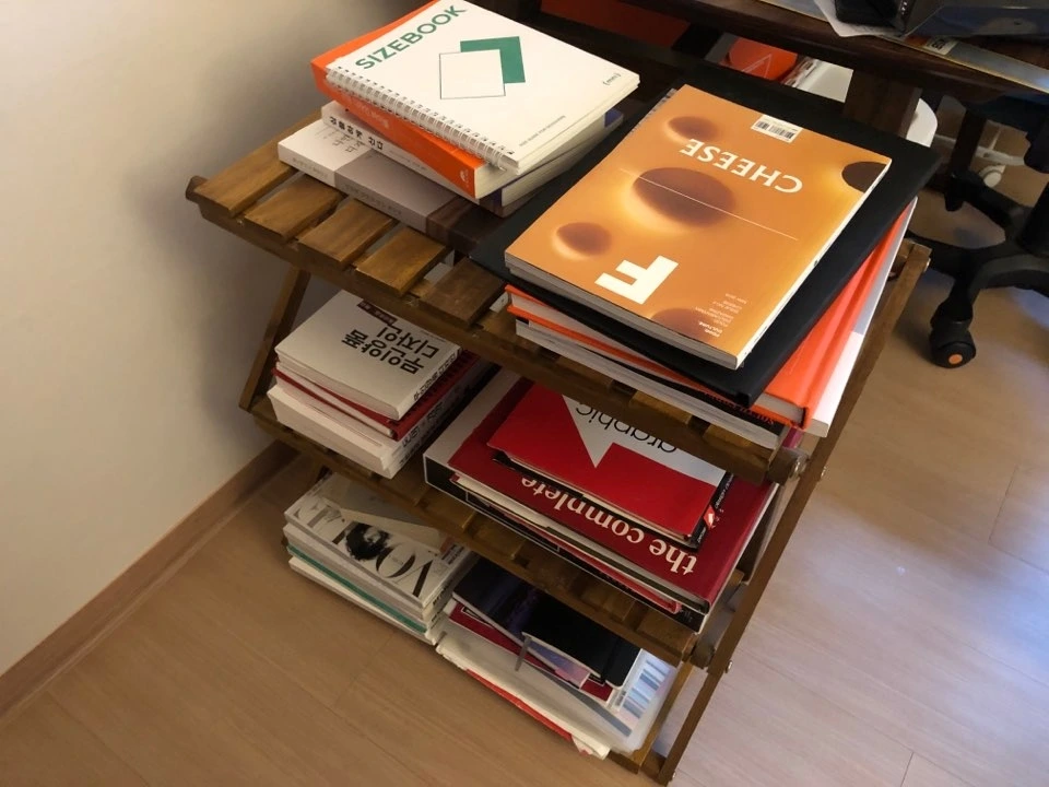책상에 쌓여있는 책들은 나한테 소중한 것들인데 보기엔 답답해 보여서 싫었다. 거실에 있던 선반을 책 선반용으로 쓰려고 옮겼다. 훨씬 여유로워 보여서 보기 좋다! 나중엔 비싼 가구를 하나씩 들이고 싶지만 돈 없는 자취러로써 오늘의 집을 자주 이용한다.