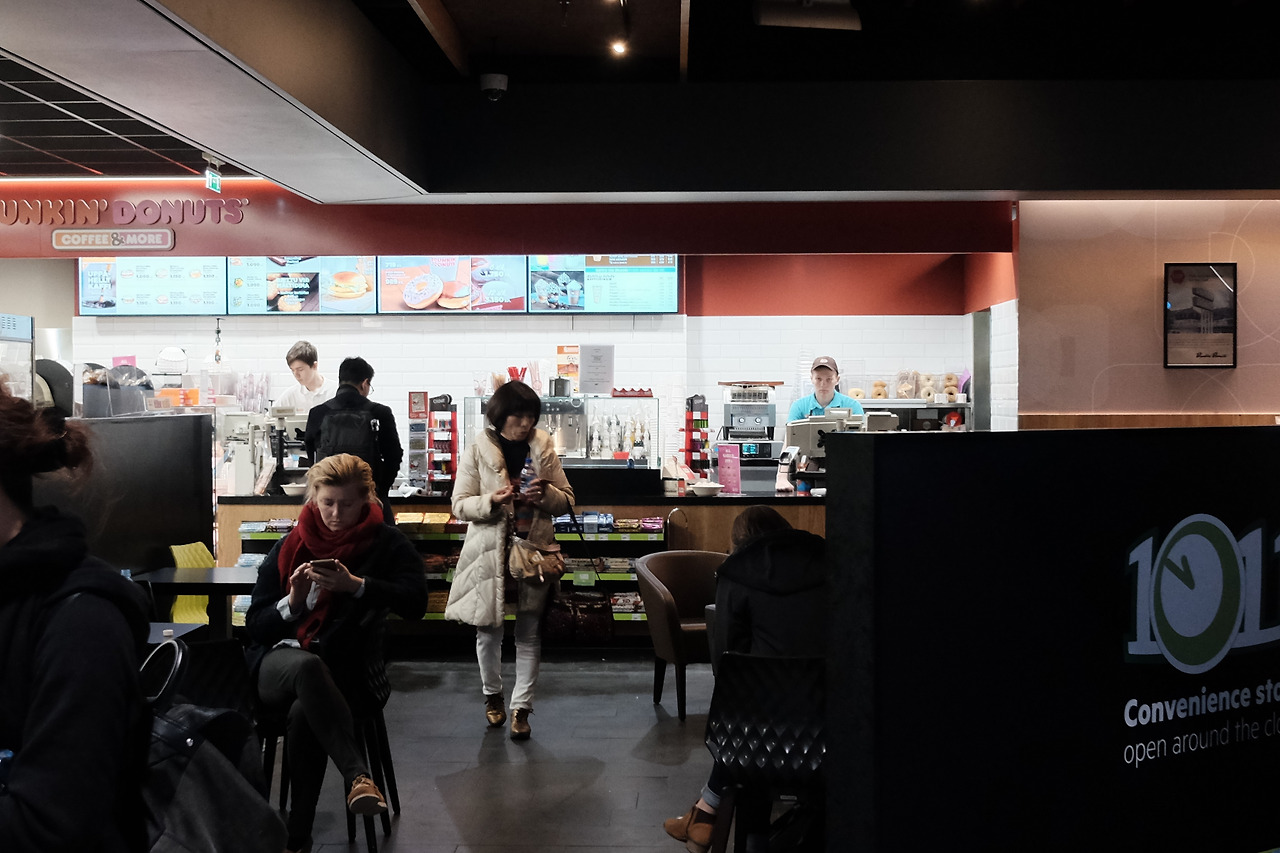 초콜릿이 커튼 밖으로 나오는 개수보다 많은 사람들이 밀려들어왔다. 사람들이 어찌나 많던지, 둘러 쌓여 아내를 두어 번 놓치기도 했다. 거대한 서양인들 사이에서 서로를 확인하는 방법은 많지 않았다. 우린 휴대전화로 전활 걸곤 높이 손을 흔듦으로써 서로의 위치를 확인할 수 있었다. 때마침 눈에 띈 초콜릿을 낚아챘다. 검은색과 보라색이었다. 안도감과 함께 수화물 처리장을 빠져나왔다. 면세점이 수화물 처리장과 연결되어있었지만, 우리는 갈 엄두도 내지 못했다. 수많은 인파를 뚫고 50m 이동하기 조차 버거웠기 때문이다.