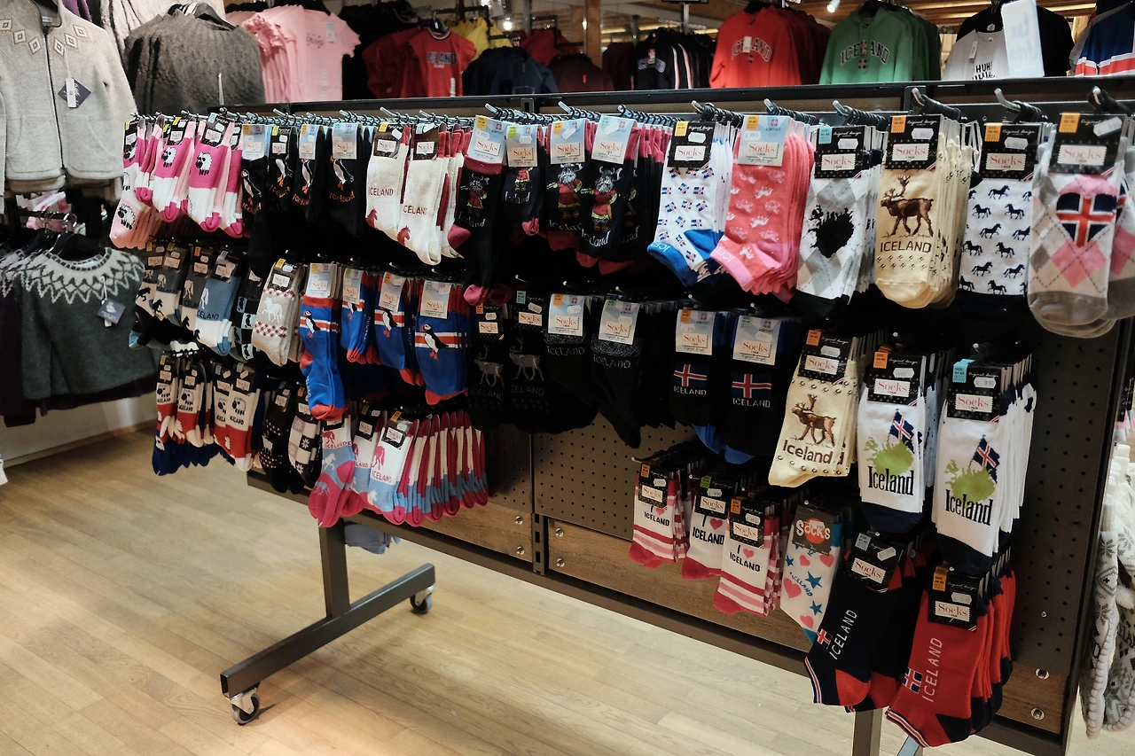 온갖 아이슬란드 굿즈(Goods)가 다 있었다. 양말, 장갑 등 말이다. 아내는 선물 대부분을 여기서 구매했으며, 품질에 만족해했다. 털로 된 제품은 굉장히 비쌌는데, 맘에 들었던 털 점퍼는 40만 원이 넘었다. 가격표만 확인한 후 집어 든 제품은 그대로 내려뒀다. 손바닥으로 구김까지 제거해주고 말이다.