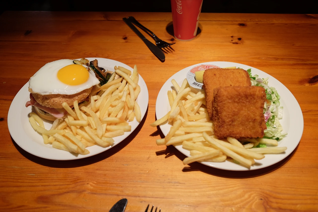 패스트푸드는 상대적으로 저렴했지만, 맛을 무시할 순 없었다. 아내는 햄버거, 나는 생선가스(?)였다. '냉동식품 가져와서 해동했겠지' 하는 생각은 생선가스를 한 입 베어 문 뒤 사라졌다. 태어나서 이렇게 속살이 탱글한 생선가스는 처음이다. 통통 튀는 식감은 어제 먹은 대구 스테이크 못지않았다. 햄버거 패티는 또 어찌나 구운향이 강하고 맛있던지 저렴하지만 만족스러운 식사였다.