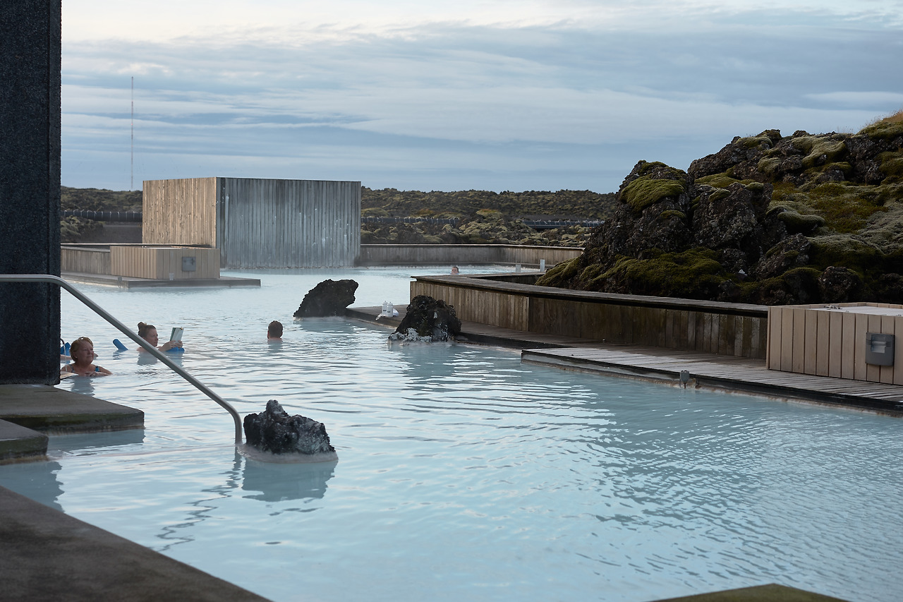 객실에 짐을 던져두고, 라군으로 달려갔다. 탈의실을 나와보니 해가 지려는 듯 어둑했다. 자그마한 노란 조명이 하늘빛 온천을 밝히고 있었는데, 오히려 환했던 대낮보다 운치 있어 보였다. 초등학교 때 배운 대로 온천수를 손부터 적시기 시작했다. 한국 목욕탕의 뜨끈한 열탕을 기대했는데, 자판기 hot 음료 정도의 미지근함은 다소 아쉬웠다.