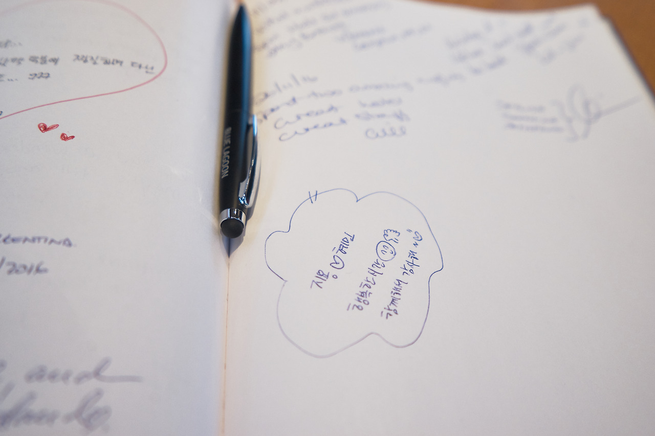 로비도 매끈하게 연마된 검은 현무암으로 이뤄져 있었는데, 오돌토돌한 질감이 주는 입체감에 고급 호텔에 온듯 어깨를 으쓱하게 했다. 마침내 좋은 곳에 아내를 데려왔달까. 하지만, 정작 신기해한 건 나였다. 걷는 내내 '우와'하는 탄성 소리를 카운터까지 이어갔고, 입 쩍 벌리고 고개만 좌우측으로 연신 돌려댔다.상모 돌리기처럼 말이다.