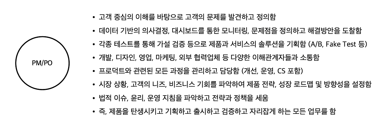 즉, PM은 제품을 탄생시키고 검증하고 자리 잡게 하는 모든 사이클에 기여하는 역할을 한다.