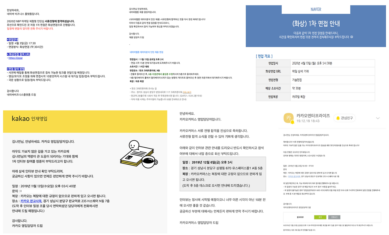 나는 네이버와 카카오에서 인턴 경험을 한 번 더 쌓고 싶었다. 음.. 결론부터 말하자면 휴학 기간 동안 네이버에서는 총 4번의 면접을, 카카오에서는 총 5번의 면접을 봤다. 그리고 전부 최종 불합격했다. 슬프게도.