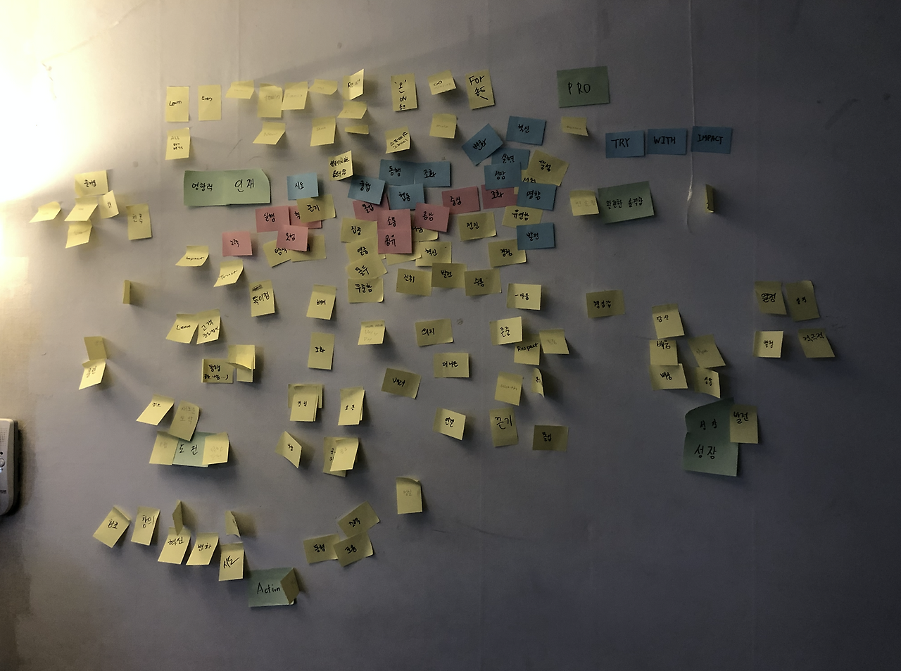 다행히 모든 임원진들은 그 핵심 가치에 대해 적극 공감했고, 지금까지도 우리들만의 룰을 바탕으로 핵심 가치를 잘 지키고 있기 때문에 일을 하는 데 있어서도 좋은 시너지를 낼 수 있었다고 본다. 이후에는 무박 2일간의 회의를 통해 27기 핵심 가치를 정하고자 했다.