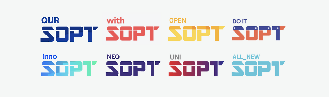 SOPT는 매 기수 새로운 브랜딩을 진행한다. 한 기수의 핵심가치부터 슬로건, 로고, 컬러까지 전부 다르다는 점이 SOPT의 또 다른 매력 중 하나이다.