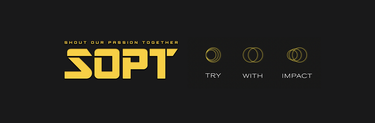 그렇게 정해진 핵심가치는 한 기수의 회원들을 뽑을 때에도 적용된다. 이번 27기의 핵심 가치는 "TRY, WITH, IMPACT"다. 나는 SOPT를 브랜딩 하기 전에는 어떤 제품이나 기업의 핵심 가치, 로고, 브랜딩이 나오는 과정이 그렇게까지 복잡하고 어려운 줄 몰랐다.