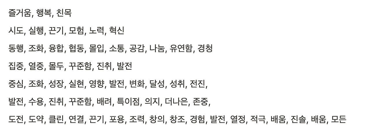 한 번 정해진 핵심 가치는 200명에 달하는 동아리원들의 지표이다. 우리는 핵심가치를 기준으로 동아리원들을 선발하고, 그 가치를 가장 중요시 여기면서 활동을 운영하기 때문이다. 즐거움, 조화, 성장, 배려, 더 나은 등 굉장히 많은 단어들을 오랜 시간 고민해서 공유했다. 모든 임원진이 가장 공감했던 단어는 "동행"이었다.