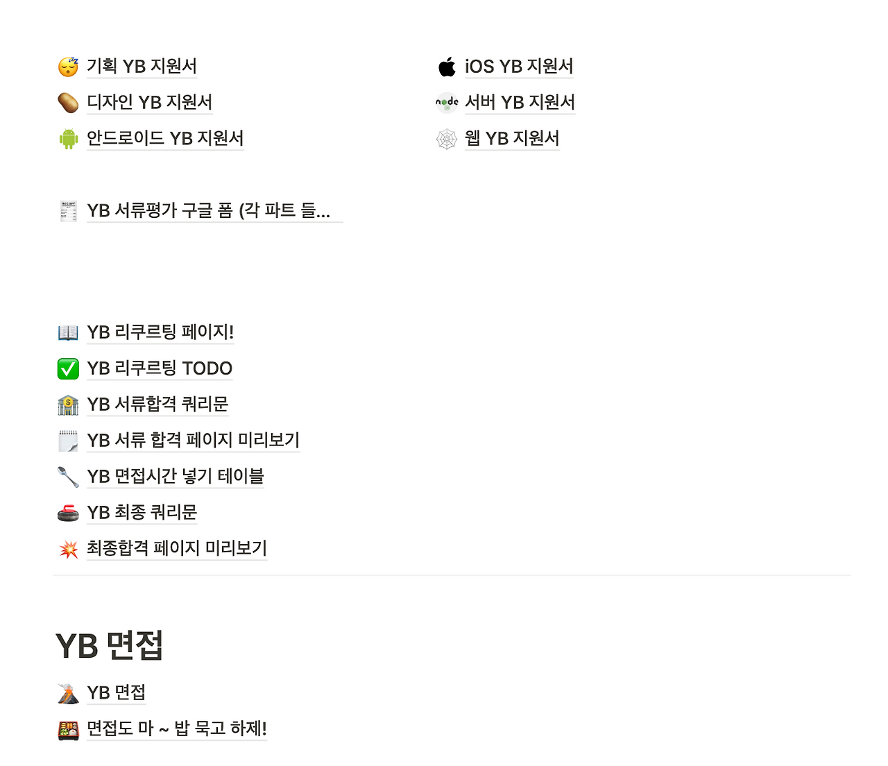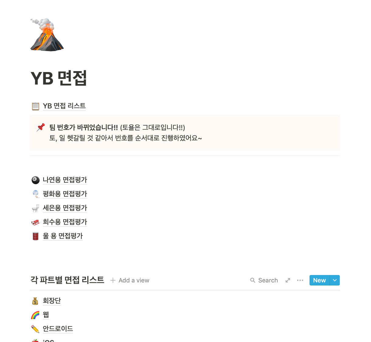 YB 면접 평가 시 활용했던 노션의 일부