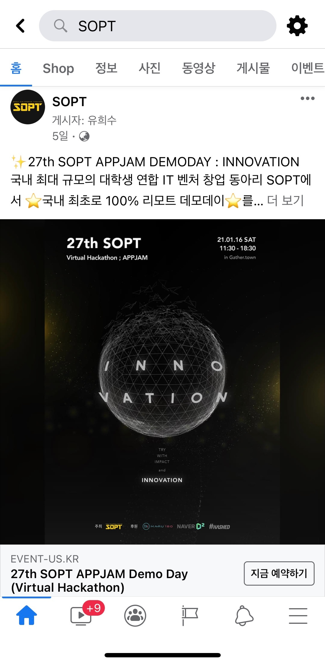 공식 페이스북, 인스타그램, 이벤터스를 활용한 홍보