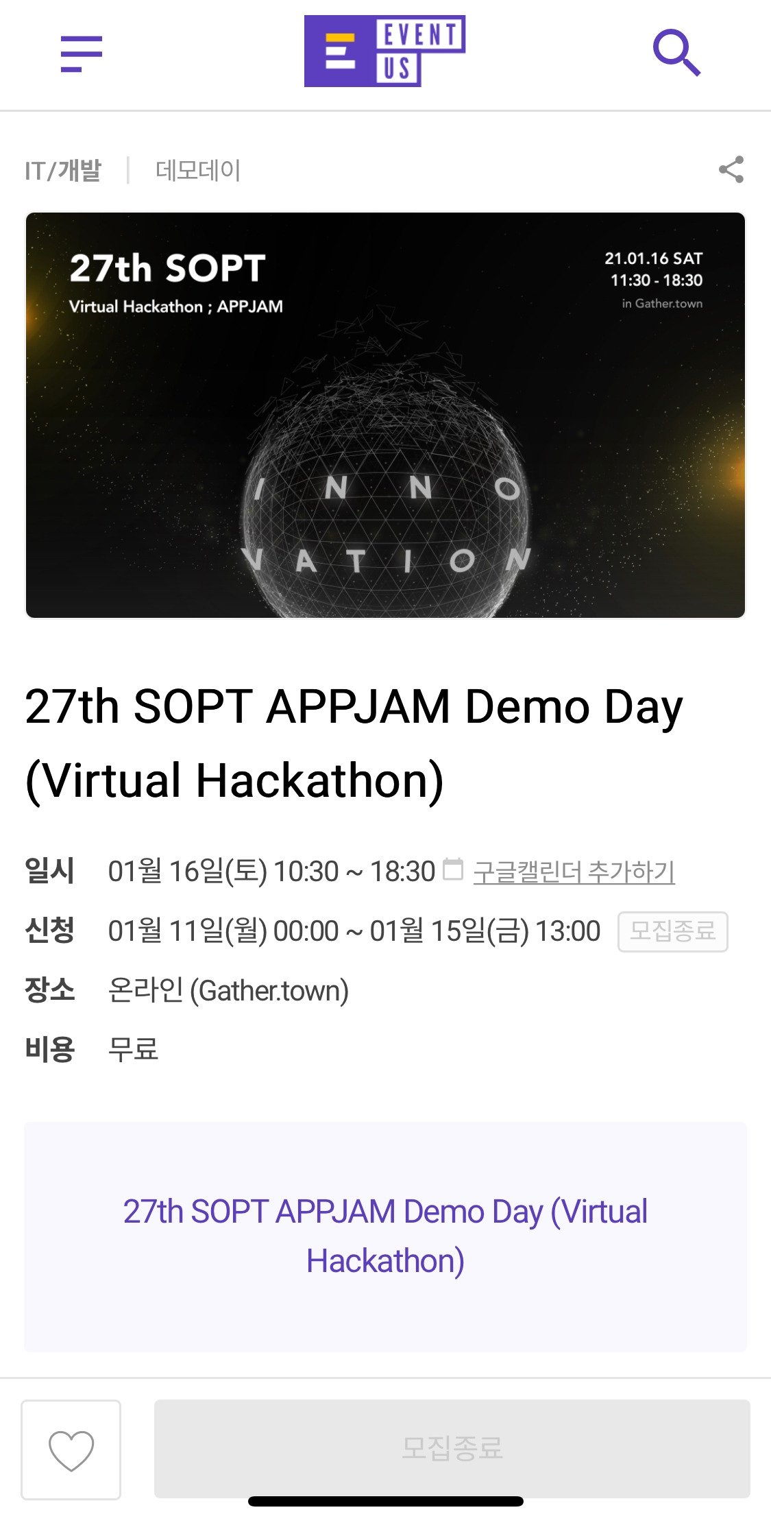 행사 신청 페이지는 아래에서 확인할 수 있다.