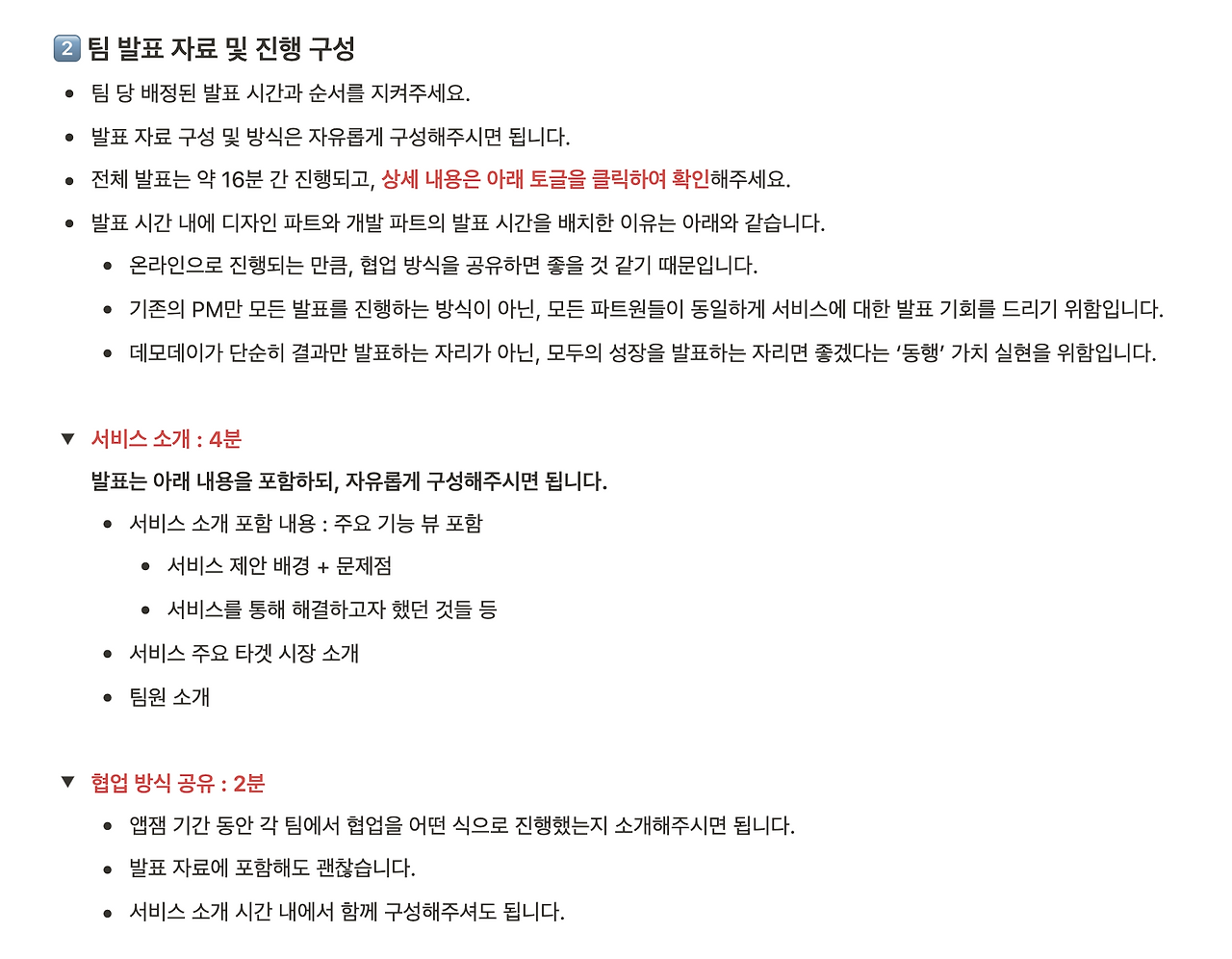 당일 발표 구성에 대한 안내자료