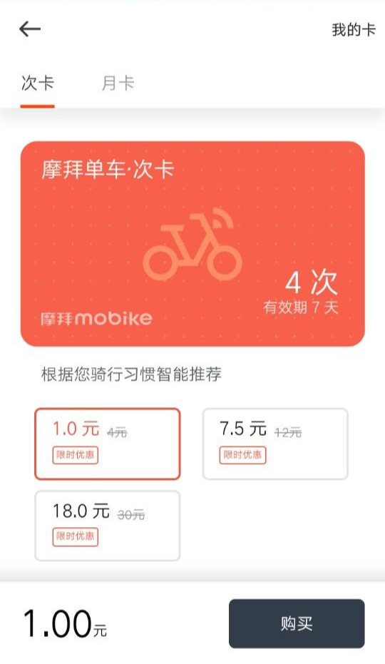 오포 OFO: 99원~199원(약 15~35천 원)