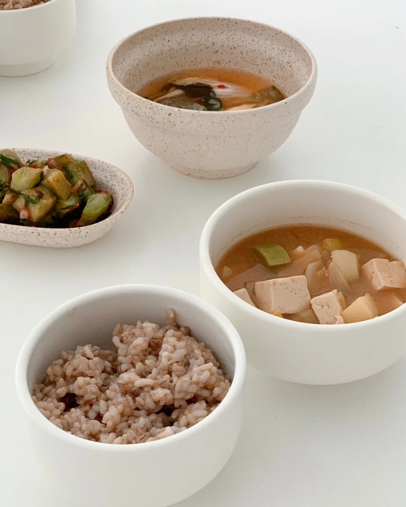 엄마가 이사 선물로 사 준 압력밥솥에서 갓 지어 뜨끈뜨끈한 현미밥을 퍼다가 찌개와 함께 상에 올려낸다. 살짝 허전하니까 엄마가 담가 준 오이김치도 같이 올린다.