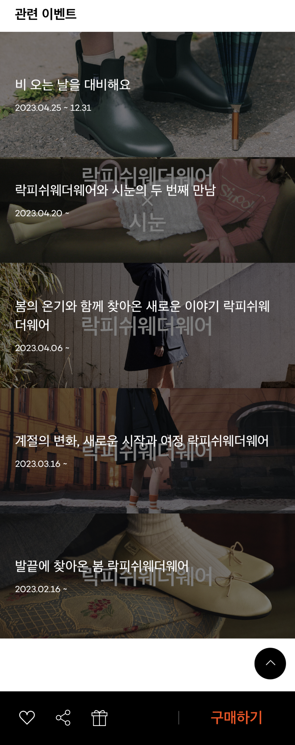 큐레이션과 이벤트를 결합한 형태로, 스토리텔링이 돋보이는 카피라이팅을 통해 29cm의 매력이 보인다. PIP의 가장 하단에 위치해 있지만, 최신 콘텐츠를 상품 상세 설명 앞단에 위치시킨다면 사용자가 호기심이 들 수 있을 것이다. 과도한 정보는 피곤함을 주지만, 29cm의 카피라이팅이라면 오히려 관심을 이끌 수 있다고 생각한다.