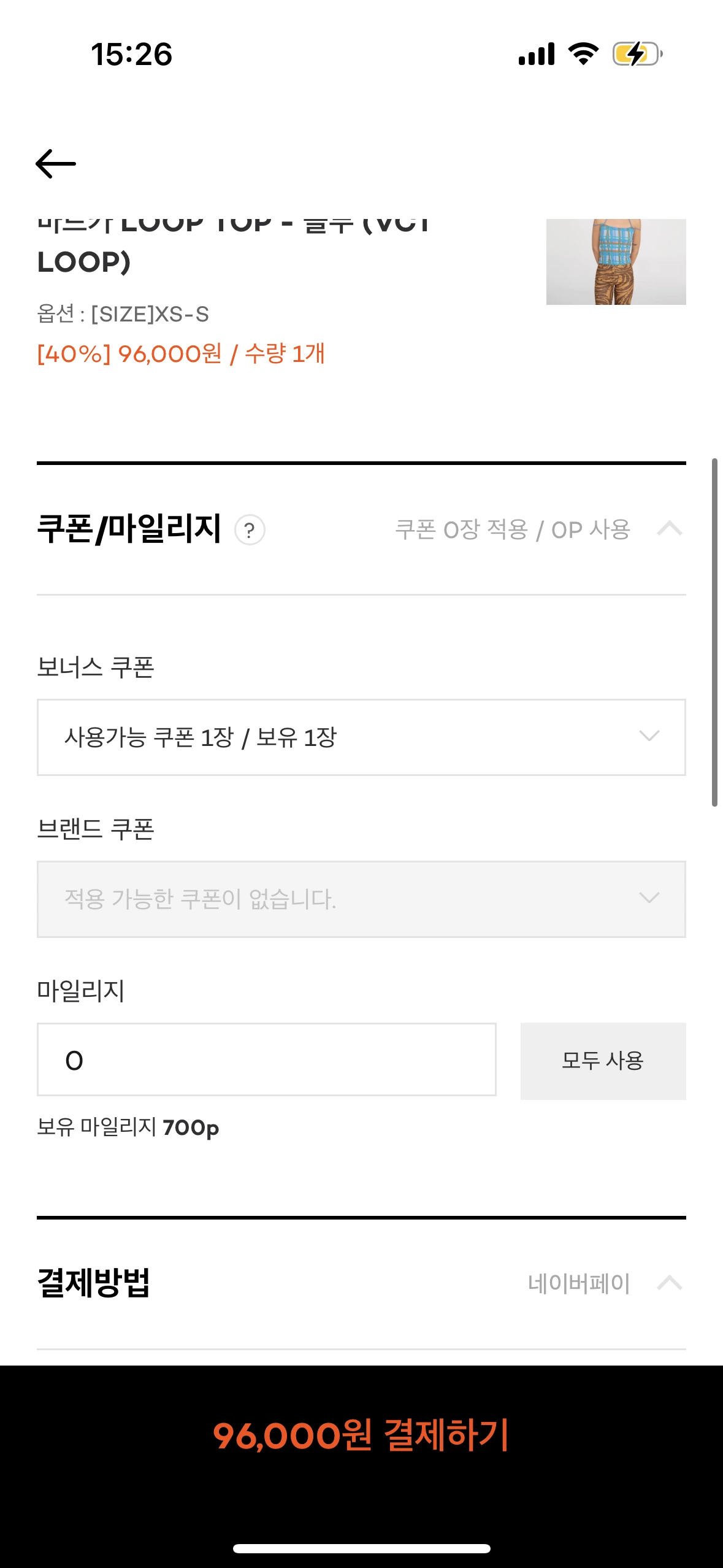 결제 화면에서 가장 눈에 띄었던 점은 쿠폰/마일리지 캐럿이 펼쳐져 있다는 점이었다. 이전에 접혀 있었기에 크기를 너무 많이 차지해서임이라 추측했는데, 현재 펼쳐져 있는 것을 확인하고 대부분의 사용자가 쿠폰 사용을 위해 클릭을 진행했음을 유추하였다.