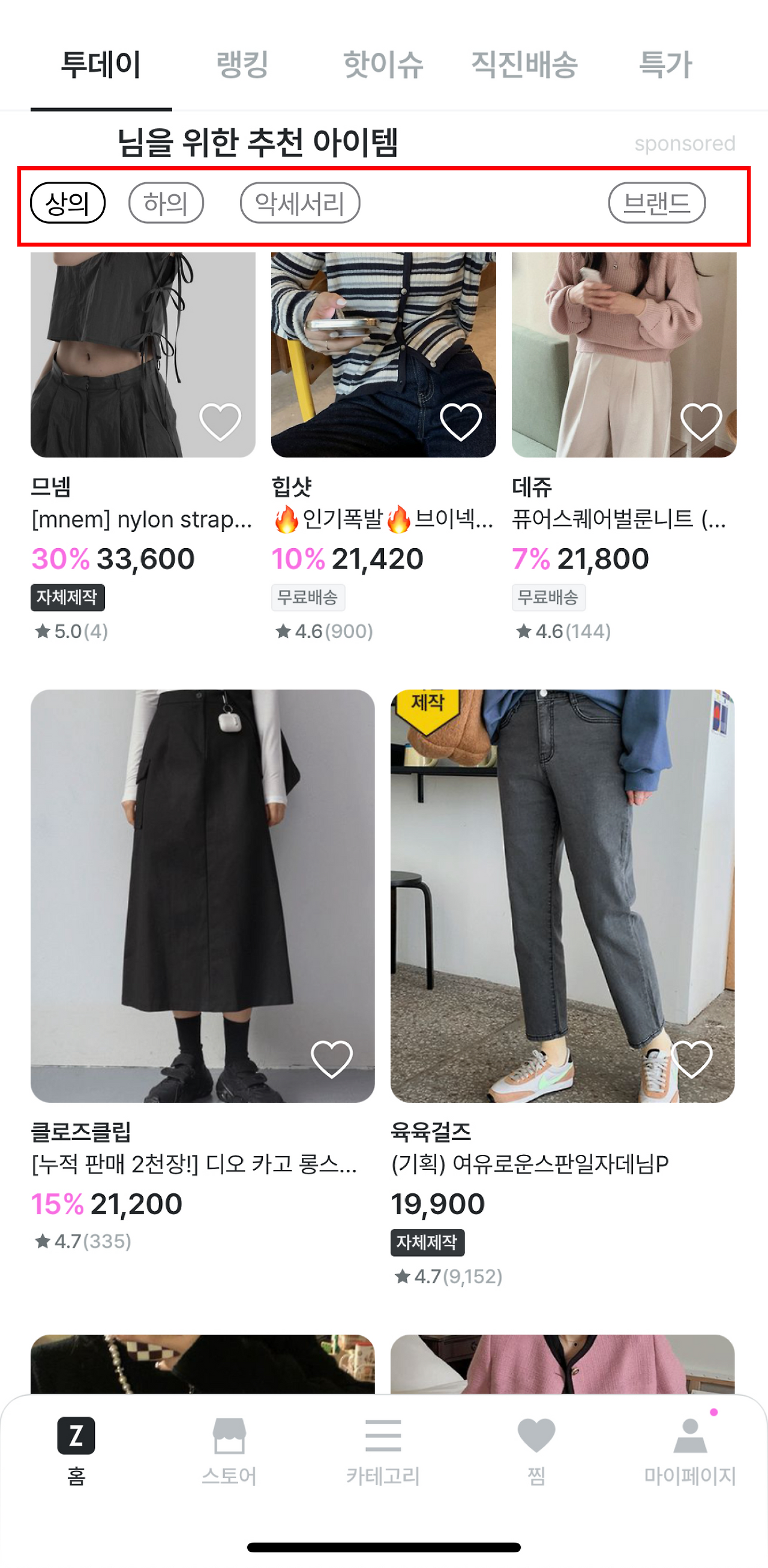 상품 카테고리별 추천 기능으로 강화하여 상품 탐색이 용이해지고, 지그재그가 편하게 스타일을 찾을 수 있다는 인식을 부여할 수 있다.