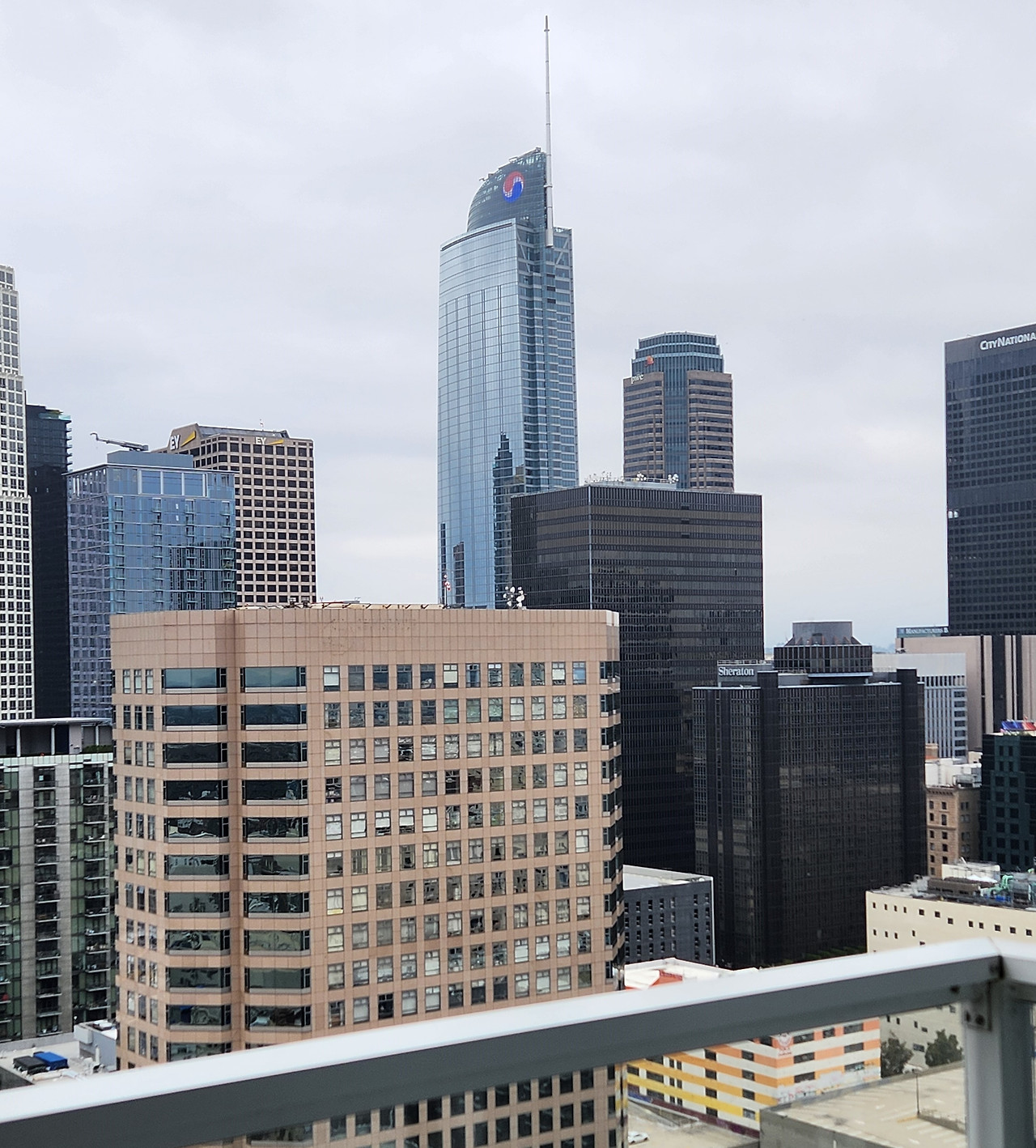 South Olive에 위치한 Level에 여정을 풀었다. 로비에서 체크인을 하고 31층의 3107호를 찾아 들어가니 넓은 식당과 거실이 눈에 들어온다. 베란다로 나가니 2개의 안락의자와 테이블이 놓여있다. 난간을 두 손으로 잡고 다운타운을 바라본다. 오른쪽으로 솟은 높은 건물에 눈에 익은 태극마크가 선명하다. 대한항공? 백팩에서 노트북을 꺼내 확인하니 대한항공의 미국 자회사가 소유, 운영하는 윌셔그랜드센터다. 대한항공은 2017년 6월 73층 규모의 윌셔그랜드센터를 개관하여 호텔 영업과 사무실 임대 사업을 영위한다. 그들의 사업 성과는 차치하더라도 LA 다운타운에 우뚝솟은 건물의 태극마크는 그간 열심히 달려왔다는 것을 과시하는 듯 하다. 그 모습이 하도 당당하여 그 뒤에 가려진 어려움쯤은 나설 자리가 없다. 그 자리에서 더욱 오래도록 빛나기를 바란다.