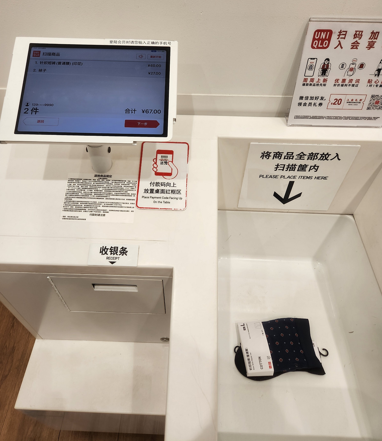 유니클로에서 양말과 팬티를 좀 사서 계산대로 향했다.