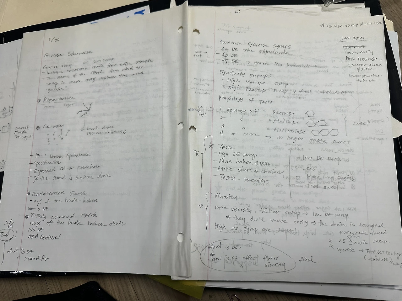 어마어마한 도구들, 학교 다닐 때 쓴 수업필기노트들, 직장에서 옮겨 적어놨던 레시피들,