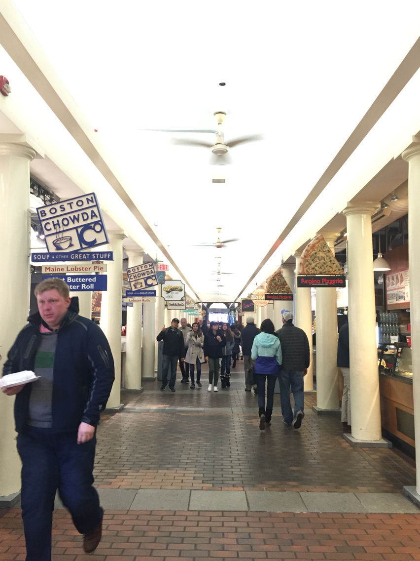 메가버스는 예정보다 30분을 더 넘긴 오후 2시가 거의 다 되어서야 보스턴에 도착했다. 숙소에 짐을 풀고 우선 요기를 하러 퀸시마켓으로 향했다. 로브스터를 즐기는 방법은 여러 가지가 있지만, 가장 대표적인 것이 lobster roll, 즉 마요네즈에 버무린 로브스터를 따뜻한 빵 속에 넣어 먹는 샌드위치인 듯했다. 퀸시마켓은 보스턴의 큰 시장으로, 이 곳에서 로브스터 롤과 clam chowder soup를 먹는 것이 대다수 관광객들의 필수 코스인 듯하여 나도 따라 해 보기로 했다.