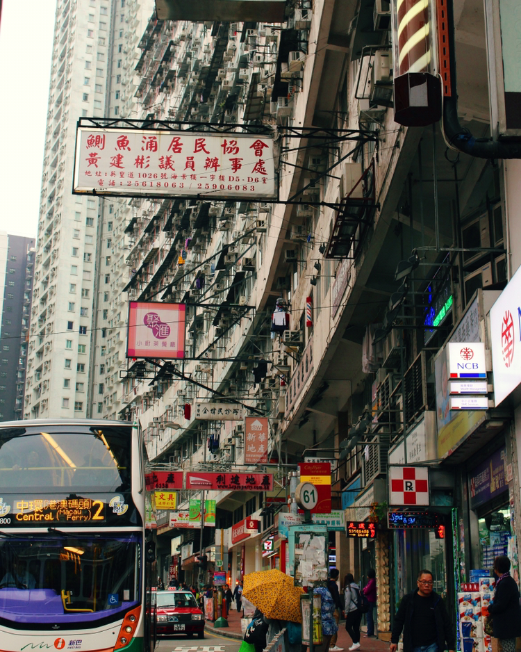 엺게 퍼지는 향 냄새, 똑똑 하고 물 떨어지는 소리, 한 손바닥으로 가려지는 크기의 쪽빛 하늘, 창문마다 드문드문 걸려있는 빨래, 어지럽게 얽혀있는 전깃줄과 배수관의 어지러움은 어쩌면 구룡성채의 잔재, 홍콩인들이 오랜 시간 지켜온 생활양식이었다.