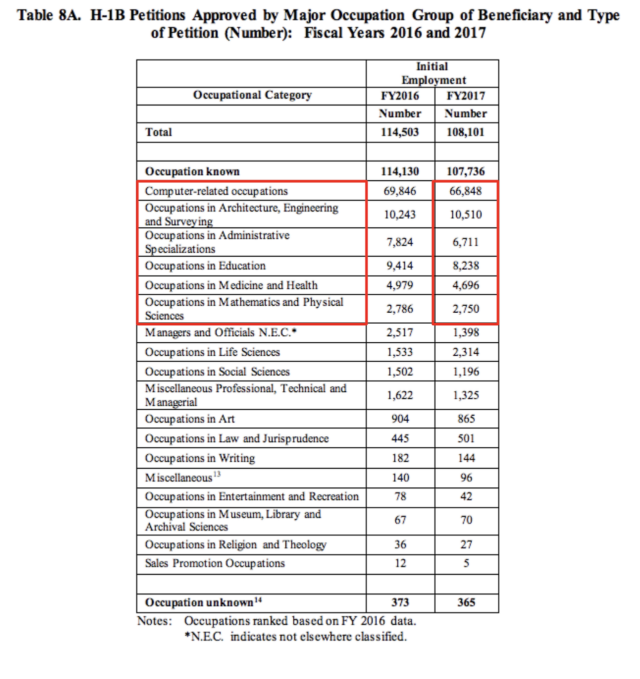 위 차트는 전공별로 H1B를 한해에 받는 숫자를 나타내는 건데요. 대부분 H1B를 받는 사람들이 이공계라는 것을 확인할 수 있습니다. 그리고 대부분의 학교에서 UX디자인 전공은 이공계에 들어가는 편입니다.