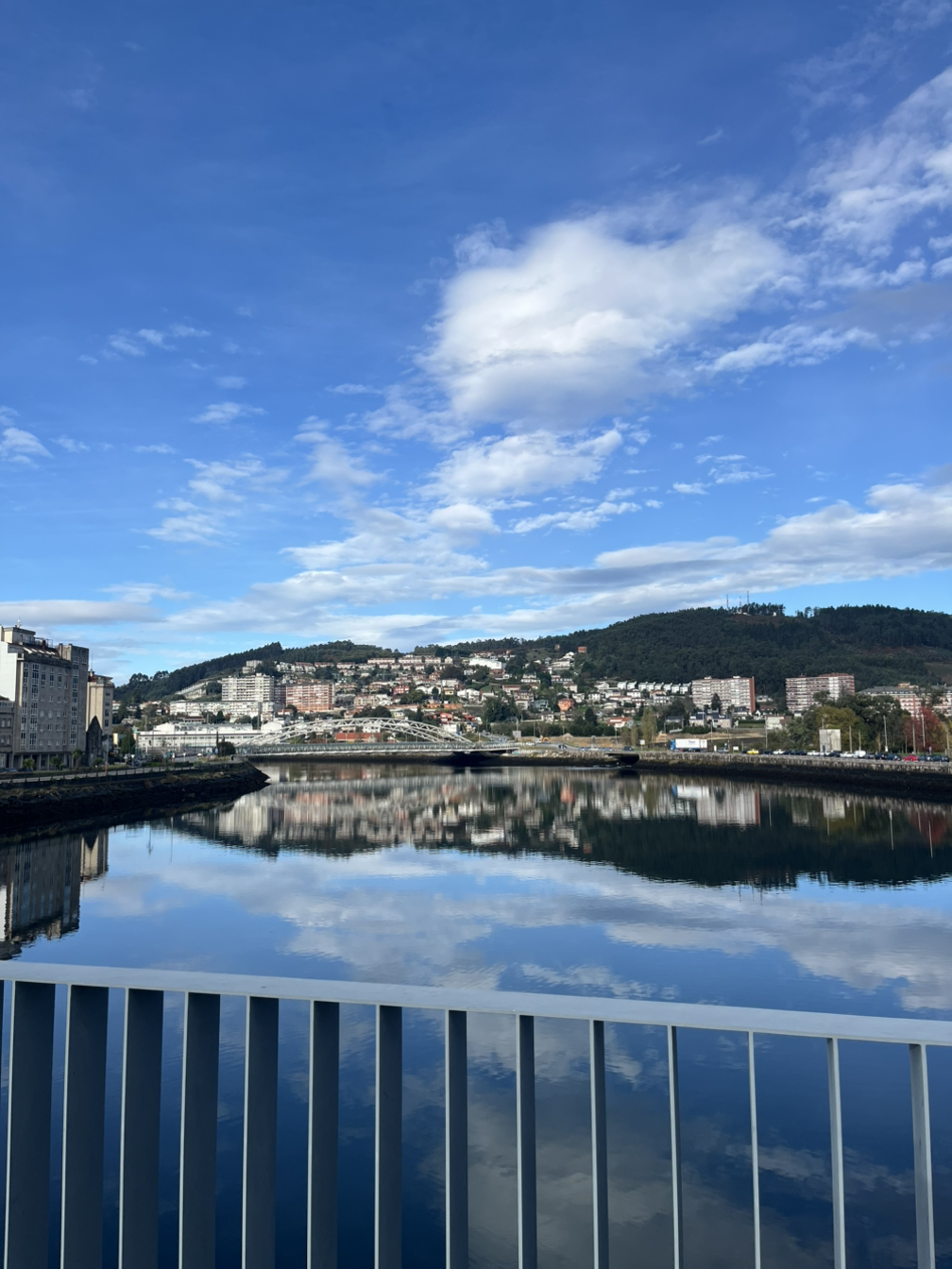 폰테베드라에서 다음 마을로 넘어가는 다리의 풍경이 근사했다. 강물에 반사된 하늘이 아름답다.