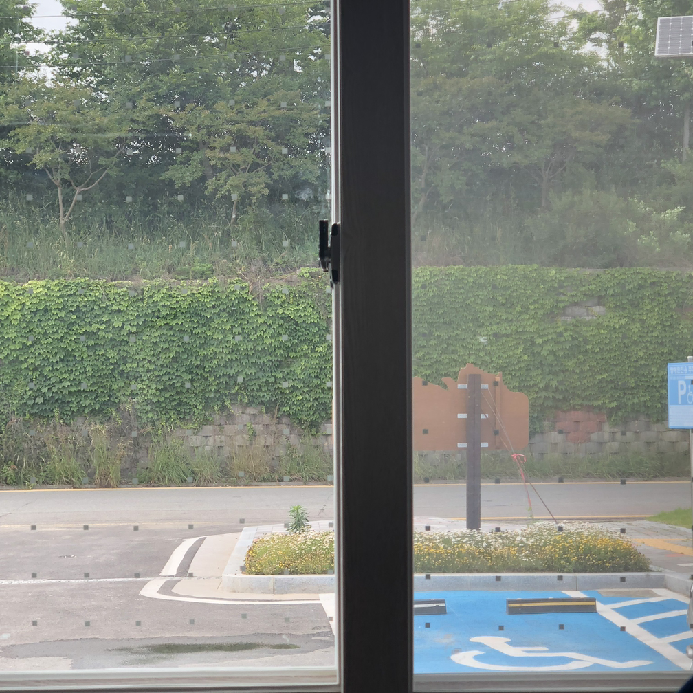 이런 식으로 창문에 회색의 점을 붙여놓으면 새들이 창문을 인식하고 부딪히지 않을 수 있다.