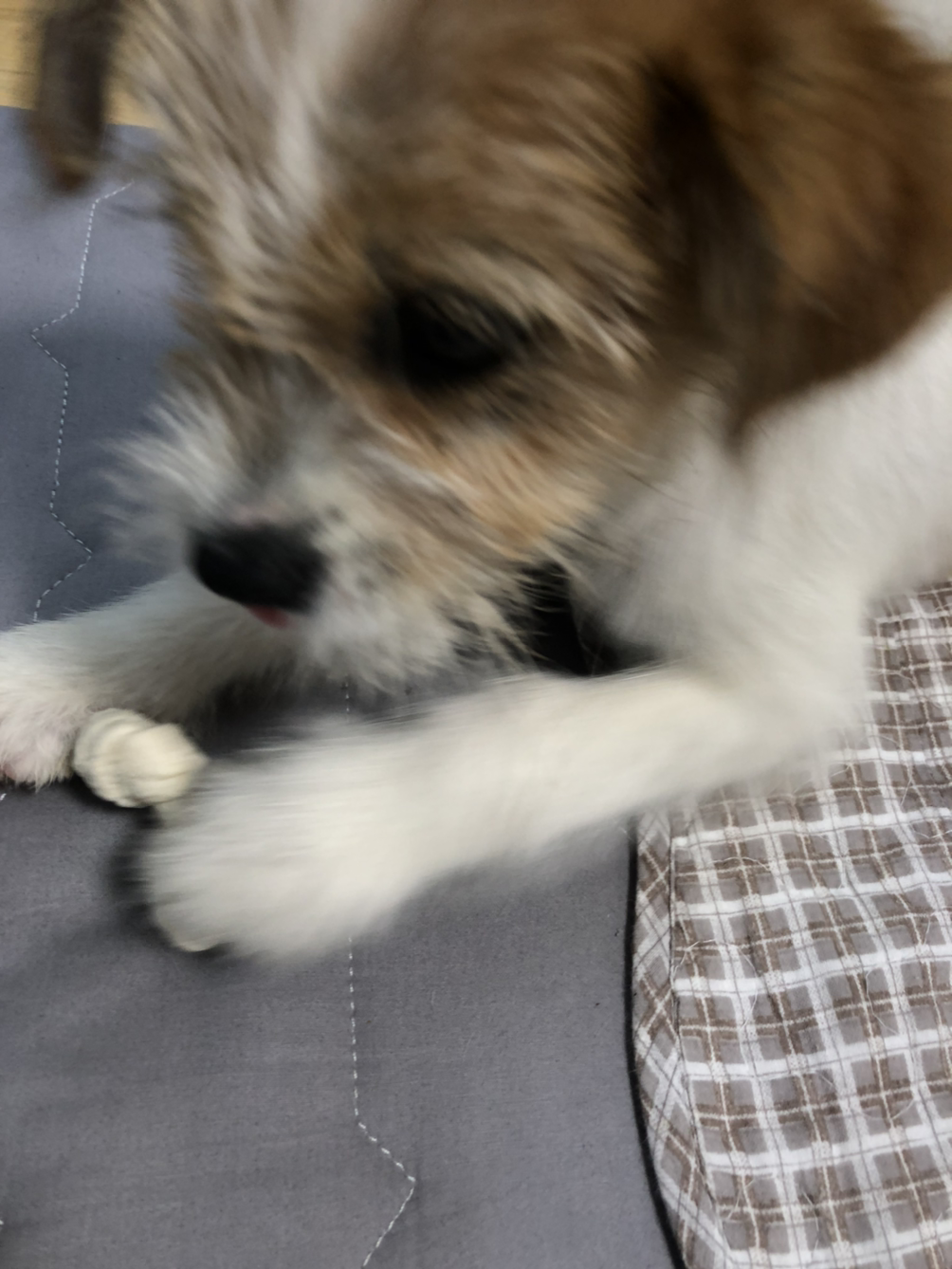 잔디를 내 방으로 데려와서 내 침대 옆에 잔디 침대를 놔줬다. 불을 끄고, 나는 침대에 누웠고 잔디는 잠이 안 오는 듯 방을 돌아다녔다.