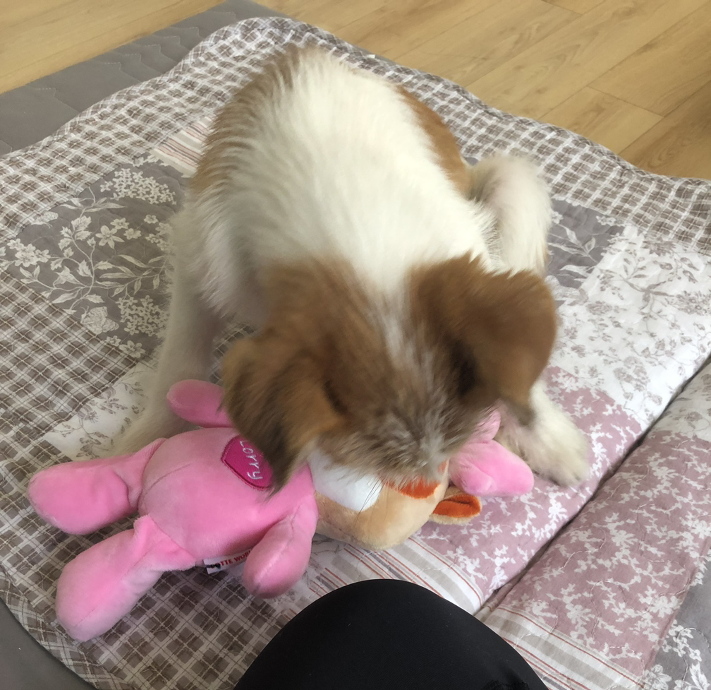 잔디가 온 날 저녁은 시간이 어떻게 지나간지도 모르게 지나갔다. 이 조그만 생명체를 보고 있는 것만으로도 재밌어서 시간이 훅 갔다. 장난감이 있으면 잔디를 위한 것인 줄 알고 노는 것도 신기하고, 자리 깔아주면 자기 자리인 것을 알고 그 위에 눕는 것도 귀여웠다. 내 배 위가 자기 자리인 것은 어떻게 알고 올라와 있는 걸까?