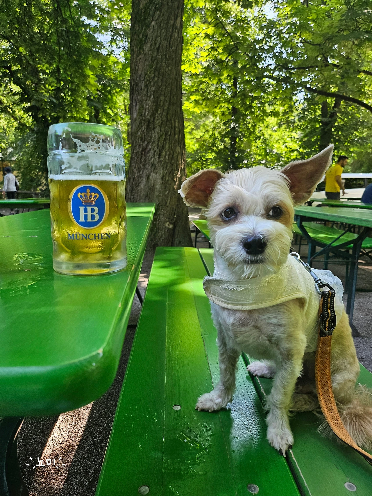 도착해서 짐을 풀고, 방울이 산책까지 하다보니 어느덧 저녁 여섯시가 되었다. 호텔 바로 옆에 학센을 파는 비어가든이 있어 뮌헨에서의 첫 식사로 결정했다. 학센은 바이에른 지방의 독일식 요리이다. 뮌헨을 걷다보면 '뮌헨'이라고만 하지 않고, 꼭 '바이에른 뮌헨'이라고 하는데, 뮌헨이 16개 주 중 하나인 바이에른 주에 속해있기도 하고, 예전엔 이 16개의 주가 모두 각자의 왕국이었으니, 확실히 프랑크푸르트가 속한 헤센주와 완전히 분위기가 다를만하다.