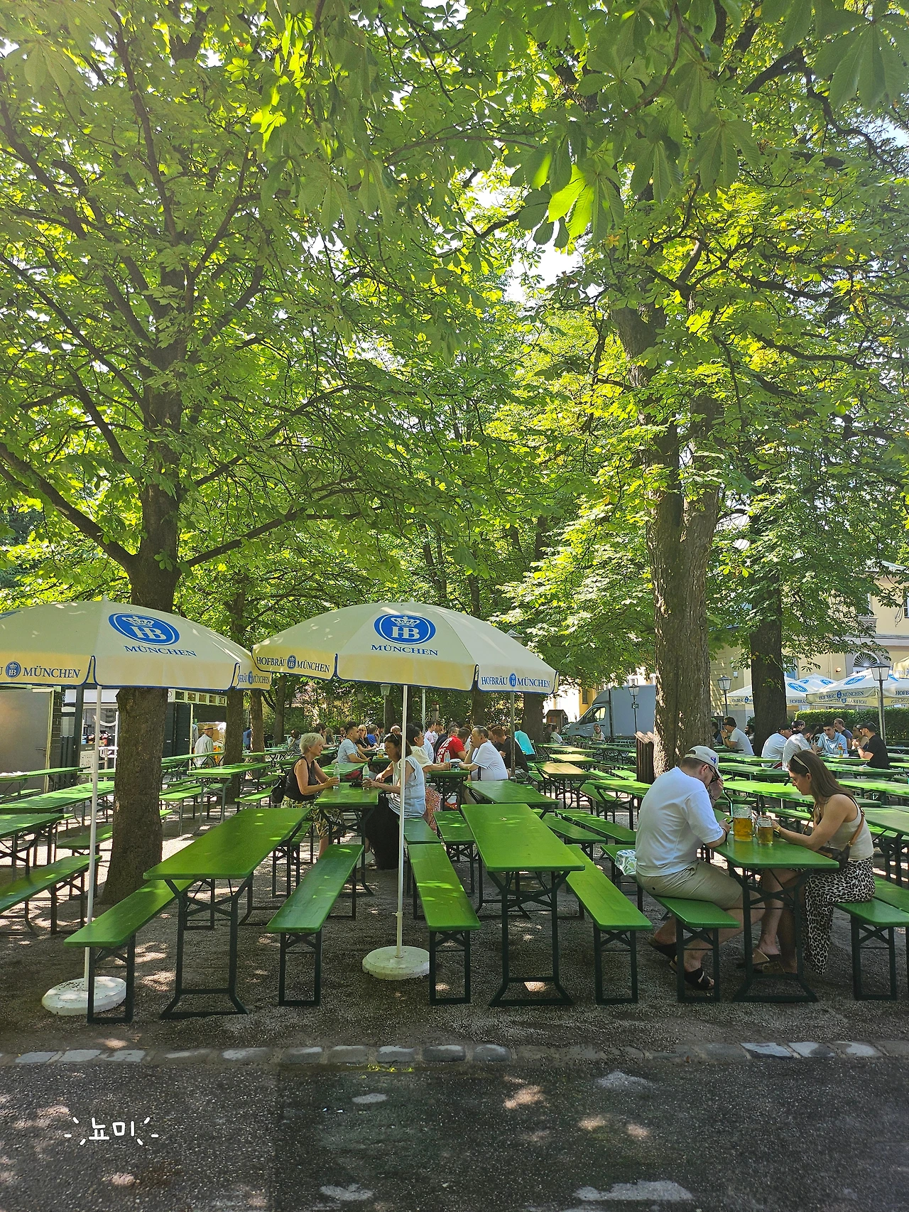 프랑크푸르트보다는 낮이 덥지만, 아침 저녁으로는 긴팔을 입고 다녀도 될 정도로 선선하다. 여름에도 찌는 듯한 더위가 없다니 정말 축복받은 대륙이다. 볼을 스치는 선선한 바람을 기분 좋게 맞으며 비어가든쪽으로 향했다. 아침인데도 사람들이 꽤나 보인다.
