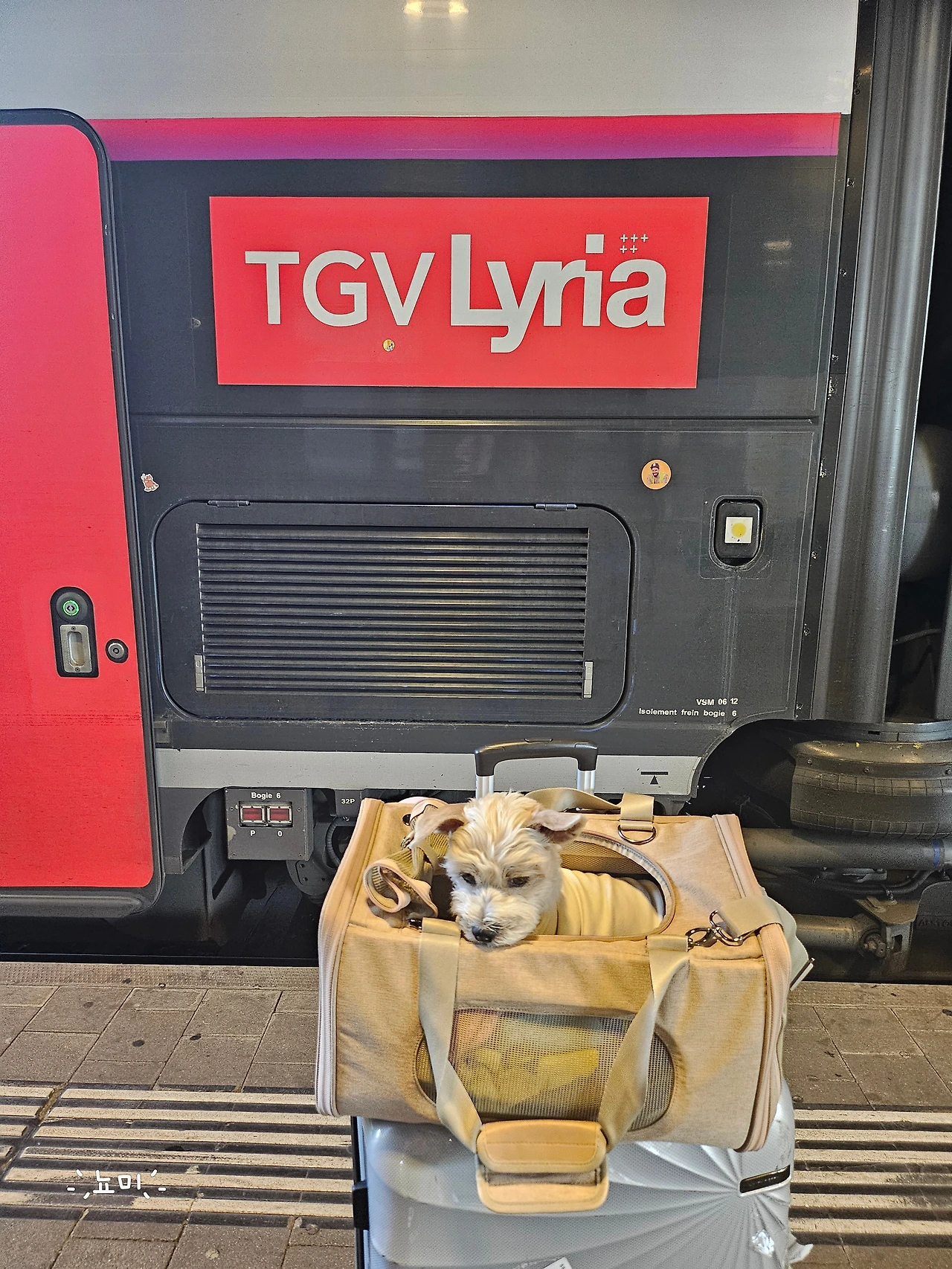 프랑스의 기차와 독일과 스위스의 기차가 다른 점이 있다면, 가방에 넣은 강아지라도 프랑스의 철도청은 7유로를 받는다는 것이다. 그리고 TGV 1등석은 다른 나라에서 이동할 땐 점심을 제공한다.(니스로 갈 때 이동 시간이 더 길었는데 식사를 제공하지 않는 것 보니 아마도 다른 나라 이동 시에만 제공되는 것 같다. TGV 브랜드가 다르기 때문일 수도.)
