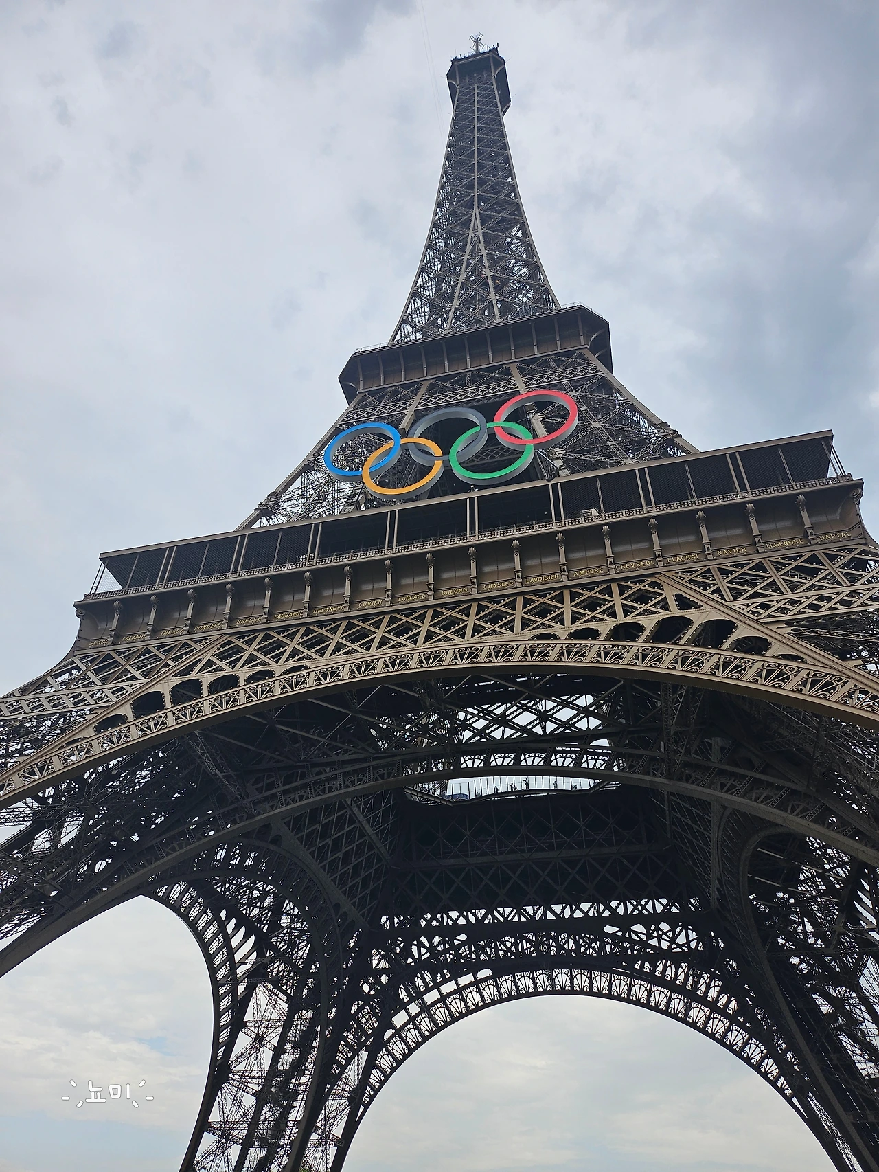 파리의 상징인 에펠 타워. 올림픽 기간이라 에펠 타워도 오륜기를 달았다. 에펠 타워 근처 공원도 올림픽 야외 경기장으로 활용되고 있어서 마르스 광장 쪽에 하루종일 앉아서 에펠타워를 감상하려는 계획은 실행하지 못했다. 흔히 알려진 에펠타워 사진 명소들이 올림픽으로 인해 막혀있어서 그 장소들에서 에펠타워를 찍진 못했다.