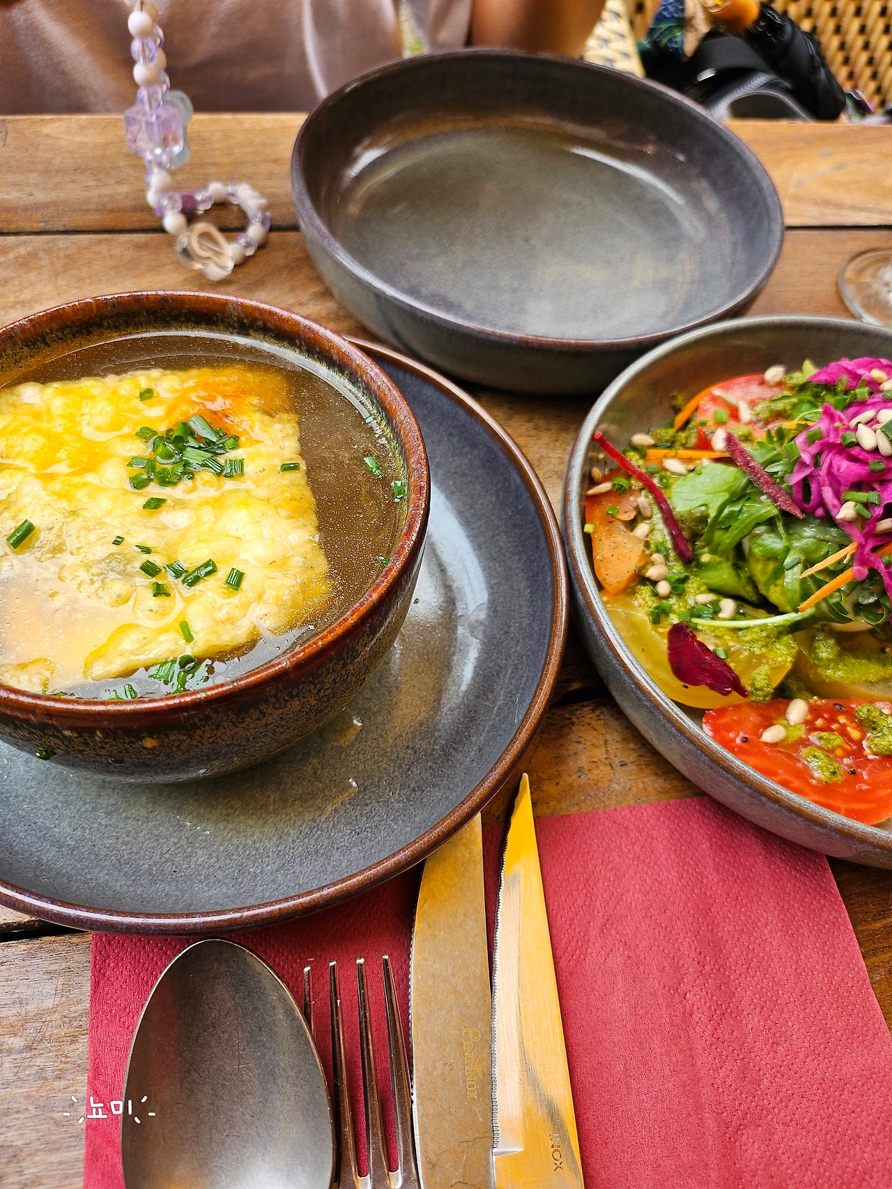 어색하게 '왔어?'라고 인사를 나눴는데, 차라리 사람이 북적거려서 어색함을 채워주니 다행이었다. 그렇게 같이 온 듯 따로 온 듯 몽마르뜨 한 바퀴를 돈 후 밥을 먹었다. 그래도 나름 프랑스에 왔으니 양파 스프, 뵈프 부르기뇽에 샐러드랑 스테이크를 추가해서 먹었다. 역시 현지에서 먹는 뵈프 부르기뇽은 다른 것인지 한국에서 프랑스인이 해주는 뵈프 부르기뇽 식당에서 먹은 것보다도 훨씬 맛있었다. 새로운 음식 덕에 이야기할 거리가 생겨서, 어색했지만 엄마랑 몇 마디씩 서로 주고 받았다.