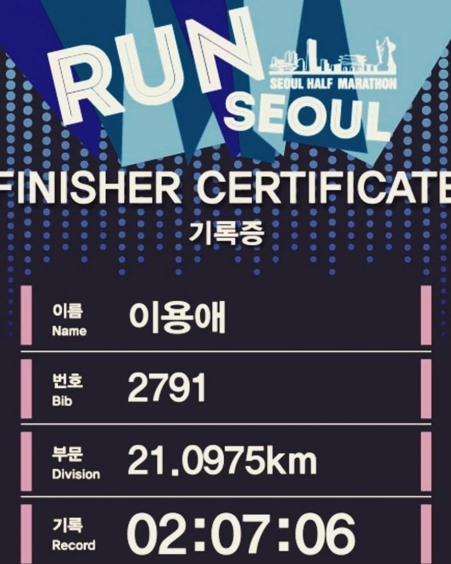 첫 하프 러닝을 마친 감상이라면 분명 끊지 않고 들어올 수 있었는데 겁을 먹었다는 아쉬움이고 그럼에도 납득이 가고 이해되는 부분은 운동 부족이라 진정한 완주가 불가능했다는 점이다