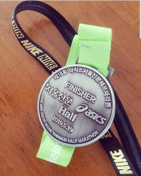 두 번째 하프 마라톤 완주 기념 메달