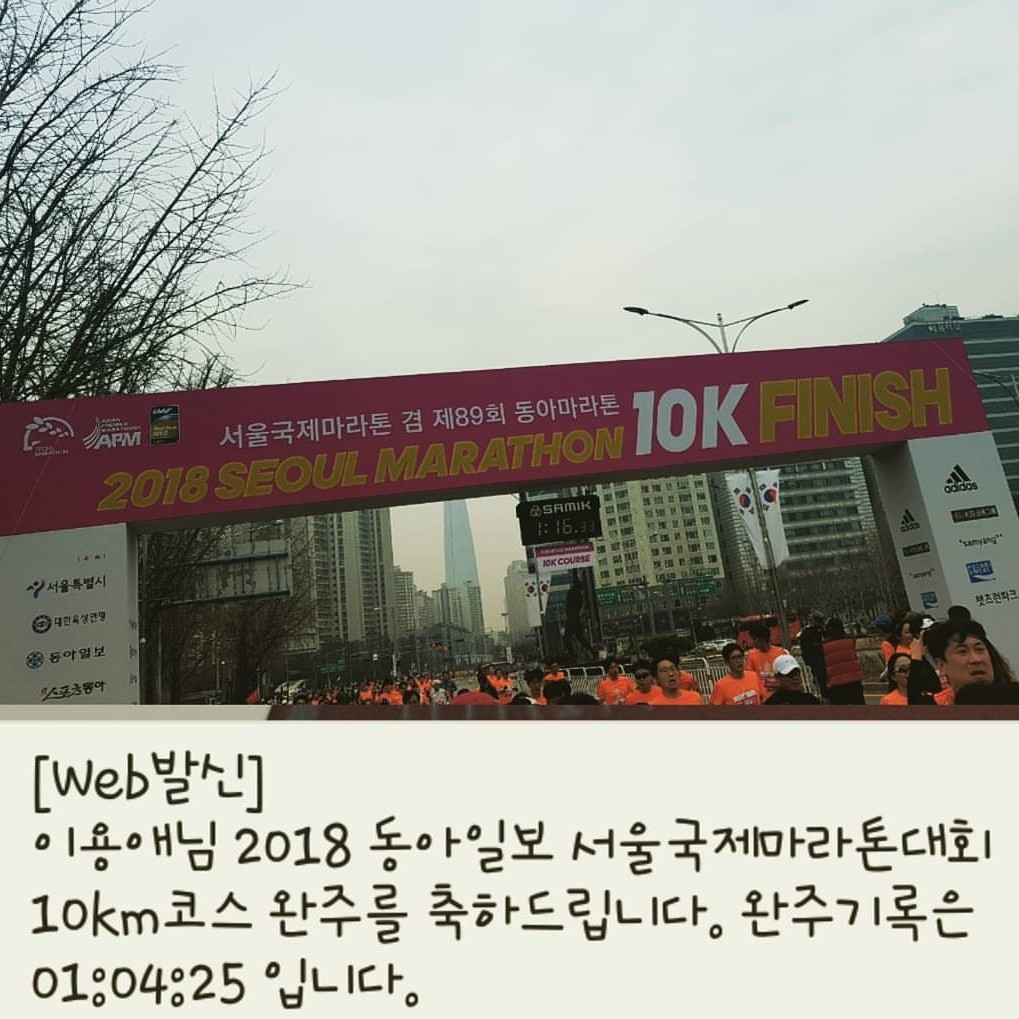 거리를 다른 사람들과 섞여 달린다는 것은 혼자서 동네를 10km 편하게 뛰어봤다거나 러닝머신을 편하게 한 시간 뛰어봤다는 느낌과 비교가 안 되는 긴장과 쾌감이 있었다