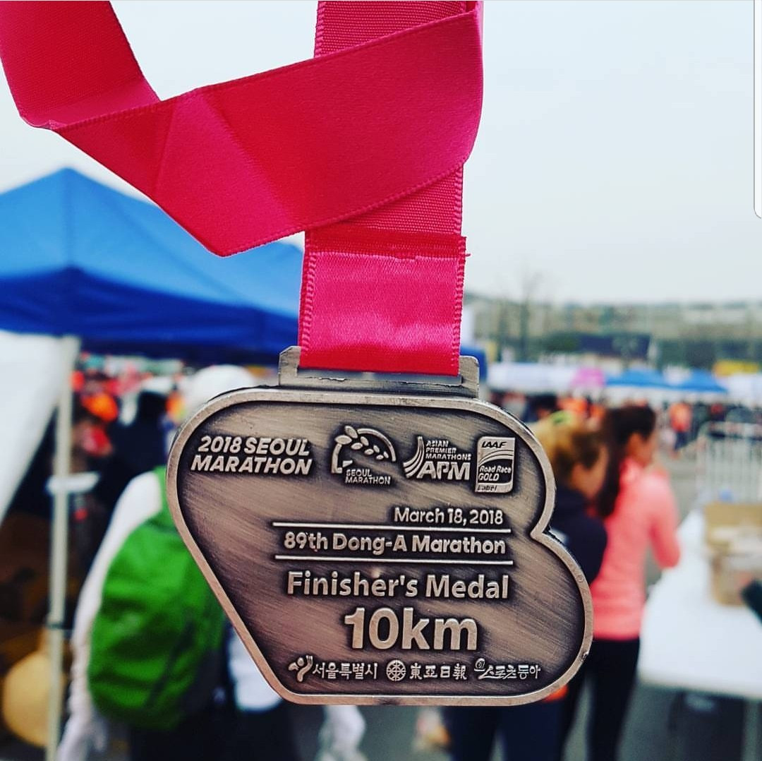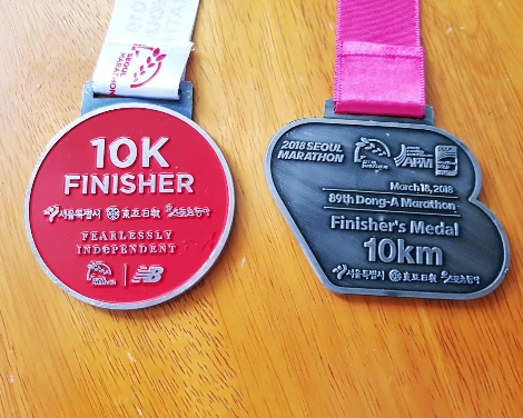서울 국제 마라톤의 작년과 올해 10km 부분의 메달