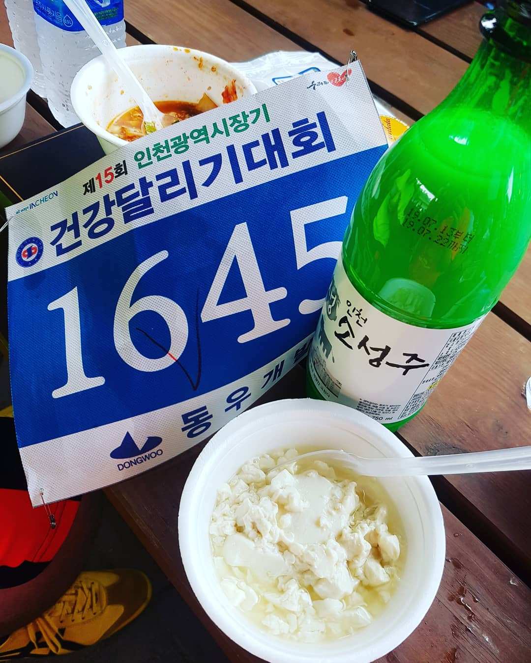 피니시 라인에서 기다리고 있던 남편은 이 대회의 시그니처인 따끈한 순두부 두 그릇을 받아 미리 자리 잡고 나를 기다리고 있었다
