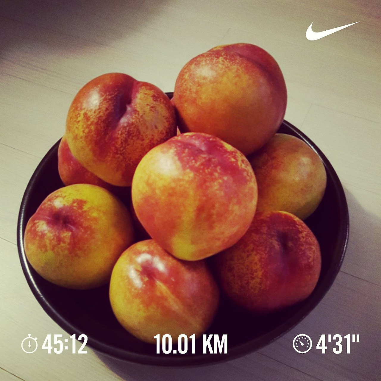 평소처럼 10km를 달린 후 돌아가는 길에 집 앞 마트에서 천도복숭아를 샀다
