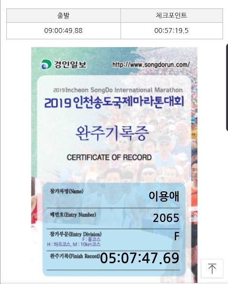 제가 그 대회의 풀코스에서 거의 꼴찌에 가깝게 완주에 성공한 1인이랍니다
