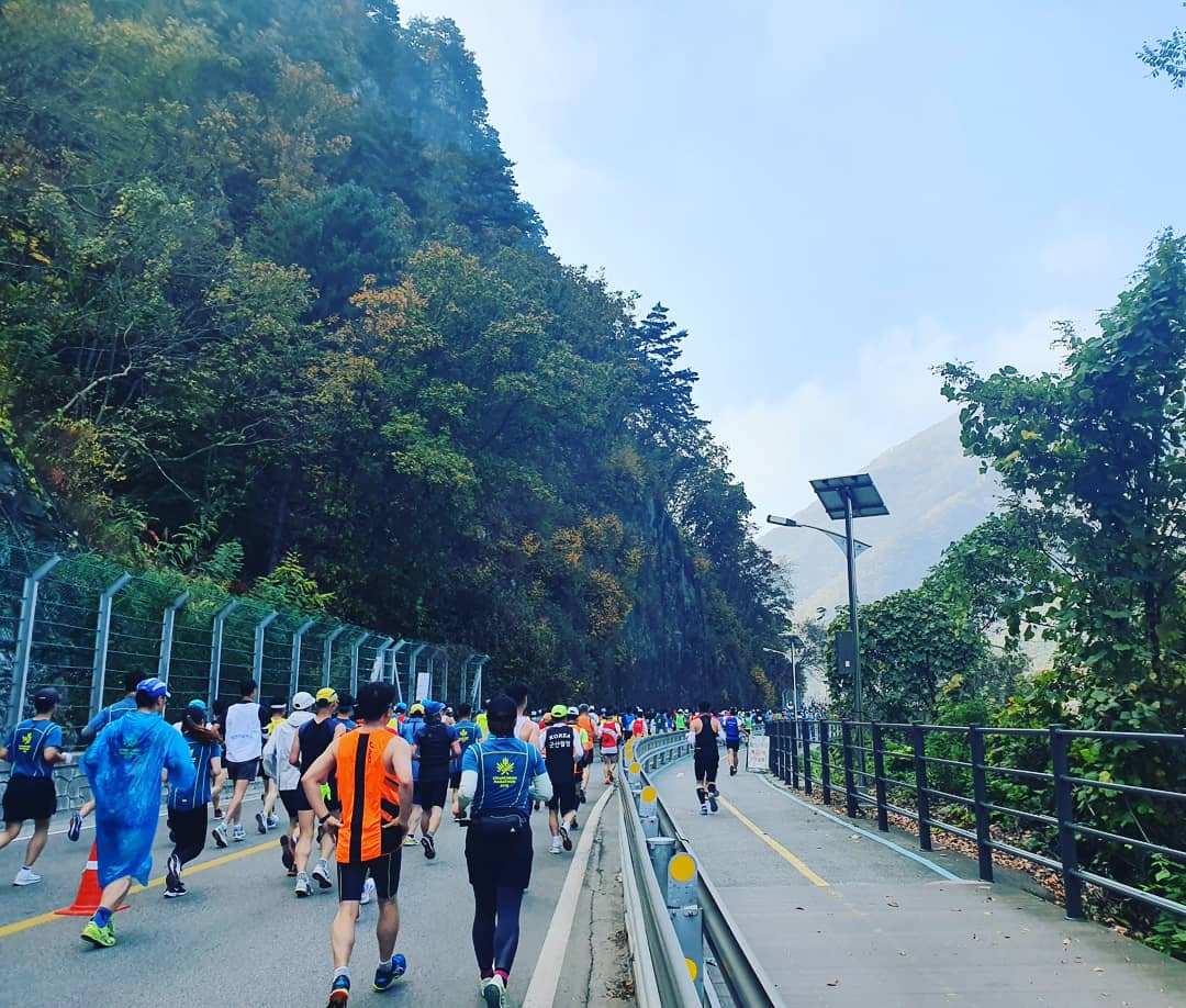 10km 때는 문 닫힌 닭갈비 가게 앞을 달렸다면 이번 풀 마라톤에선 단풍과 의암호의 절경은 물론 지루한 코스에서 눈에 들어오는 배추밭까지 다 좋았고 간간히 마주한 응원도 고마울 따름이었다