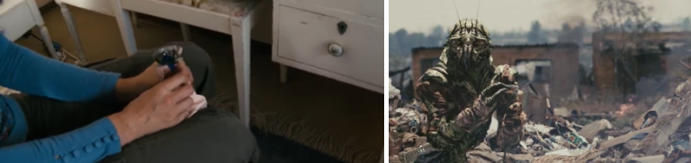 반면 비커스는 직접 디스트릭트 9에 들어가 자신의 눈으로 프런들을 보고 그들을 이해하게 된다. 처음 크리스토퍼의 아들을 만났을 때, 그는 비커스가 건넨 사탕을 다시 비커스의 눈에 던진다. 이것은 제대로 보지 못하는 비커스를 향한 질책일 것이다. 하지만, 프런의 삶을 경험한 이후 그의 한쪽 눈은 프런의 것으로 변한다. 마지막 프런으로 변했을 때에도 비커스는 인간 시절의 초록 눈과 프런의 노란 눈을 모두 가진 오드아이를 가지고 있다. 따라서, 그는 인간의 입장과 외계인의 입장을 모두 바라볼 수 있는 존재가 된다. 유튜브나 AI 영상이 판치는 요즘 어떤 현상을 제대로 보고 판단하는 것이 점점 중요한 능력이 될 것이다.