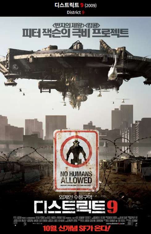 이 영화의 장르는 SF지만 영화를 보는 내내 마치 한 편의 '다큐멘터리'를 보고 있는 것과 같은 느낌을 받았다. 영화 자체가 실제 과거 요하네스버그에서 있었던 흑인 차별 정책을 그대로 다큐멘터리의 형식으로 보여주고 있기 때문이다. 다만, 차별받는 대상이 흑인이 아닌 외계인으로 바뀌었을 뿐. 이 작품이 '닐 블롬캠프' 감독의 첫 장편 영화 데뷔작으로 알고 있는데, 자칫 무겁고 비극적으로만 보일 수 있는 이야기를 감독이 자신이 상상력과 뛰어난 연출을 통해 아주 흥미로운 작품으로 탈바꿈시켰다고 생각한다.