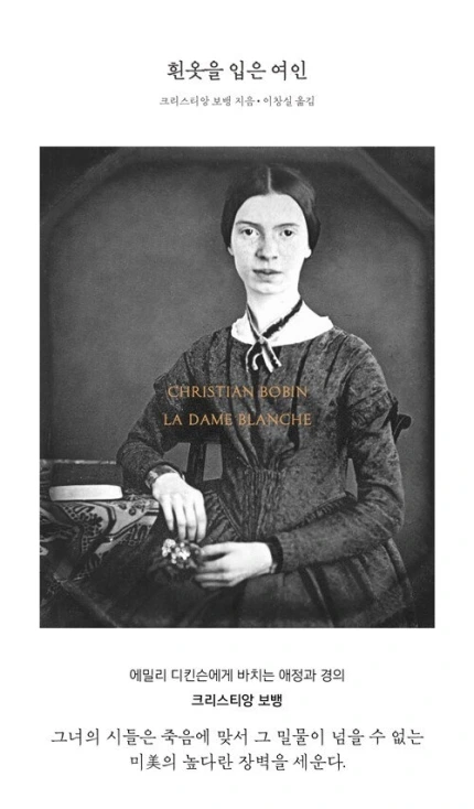 프랑스 작가 크리스티앙 보뱅은 '흰 옷을 입은 여인'을 통해 에밀리 디킨슨(1830~1886)을 그려냈다. 1800편의 시 중 단 몇 편을 제외하곤 모두 서랍 속에 넣어두었던 에밀리. 보뱅은 그런 그녀에 대한 자료를 수집하고 연구하며 에밀리의 삶을 그렸지만, 읽다 보면 보뱅의 영혼이 깃든 것처럼 읽힌다. 시간의 논리를 벗어나 편편이 다른 이야기 속에 존재하는 에밀리가 퍼즐처럼 하나씩 맞춰지고, 우리에게는 무한한 사랑과 순수함으로 빚어진 그녀가 서 있다.